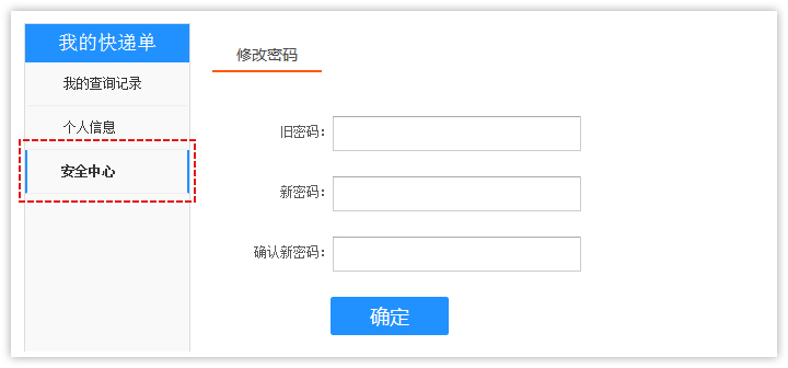 2、用戶中心點擊【安全中心】,進入密碼修改頁面,輸入原密碼以及新密碼,點擊確認按鈕即可。