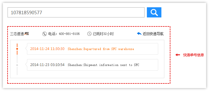 2、查詢快遞單號詳細信息。