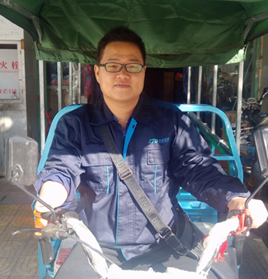 在操作場(chǎng)地打包區(qū)域,黃月斌僅用3分鐘將40-50個(gè)大小不一的快件整齊地放在袋子里。而快件全套操作流程,黃月斌只用了1個(gè)月就全部掌握。由于他積極上進(jìn),還考取了快遞員技能資格證書。然而有誰知道,分揀、建包、派件等這些工作,普通人或許可以信手拈來,但是黃月斌卻不行。4歲時(shí)因貪玩右臂被鞭炮炸傷截肢,只能靠左手勞作生活的黃月斌需要付出比健全人更多的努力。就拿建包來說,快件必須要整齊碼放在建包袋里,黃月斌單手裝件,必要時(shí)他就手腳并用,再不濟(jì)就用嘴咬住袋口。另外黃月斌送件的三輪車也是經(jīng)過他自己改裝,加油門的拉桿被他套上了一截水管,使他右臂截肢以上的部位可以套到水管中,從而完成加油門的動(dòng)作?!半m然失去了一直手臂,但是我還是對(duì)生活充滿信心?!?/span>
